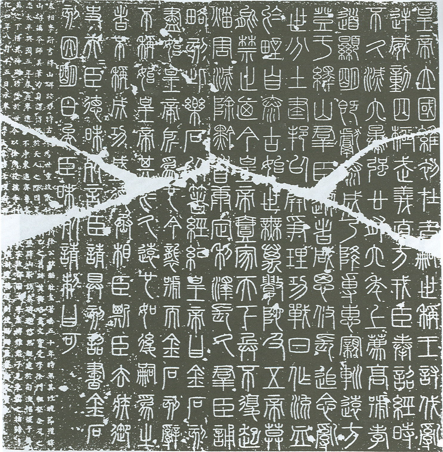 Ezek az írásjegyek egyre távolabb rugaszkodtak ugyan a piktogramoktól, cserébe viszont könnyebb volt őket kőbe vésni, és így sokkal jobban terjedtek a birodalomban. Abban az időszakban, amikor a kis pecsétírás lett Kína hivatalos írása, az írásjegyek aránya állított téglalap volt.