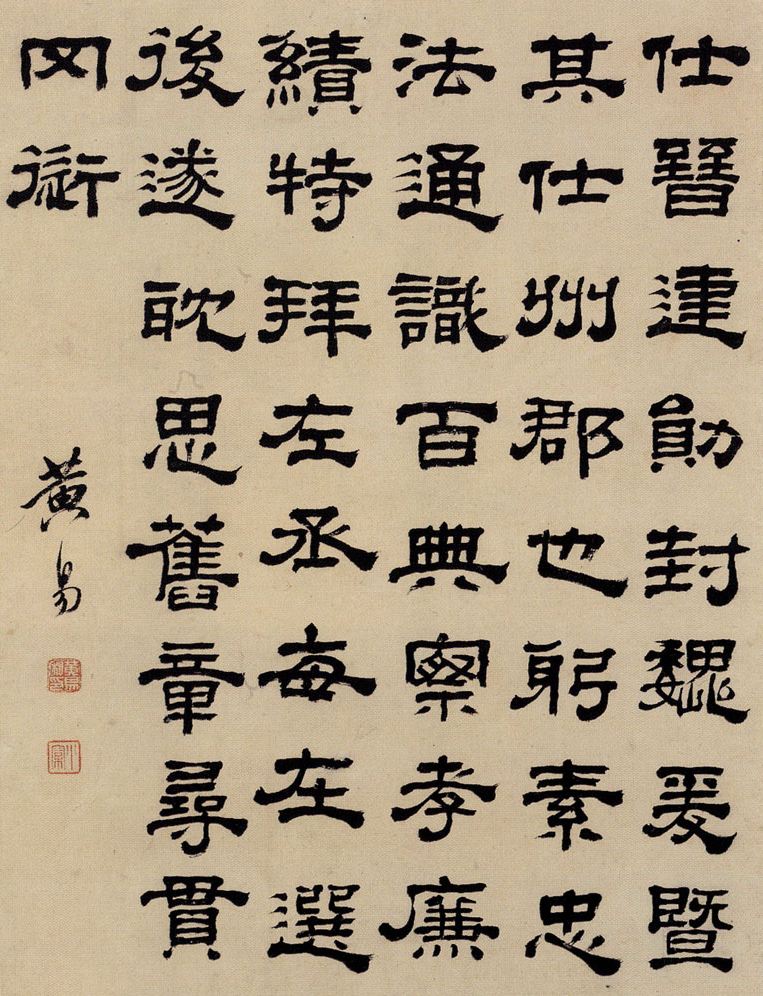 Huang Daozhou (黃道周, 1585–1646) kalligráfiája Reisho (隷書) stílusban; Ming (明)-dinasztia