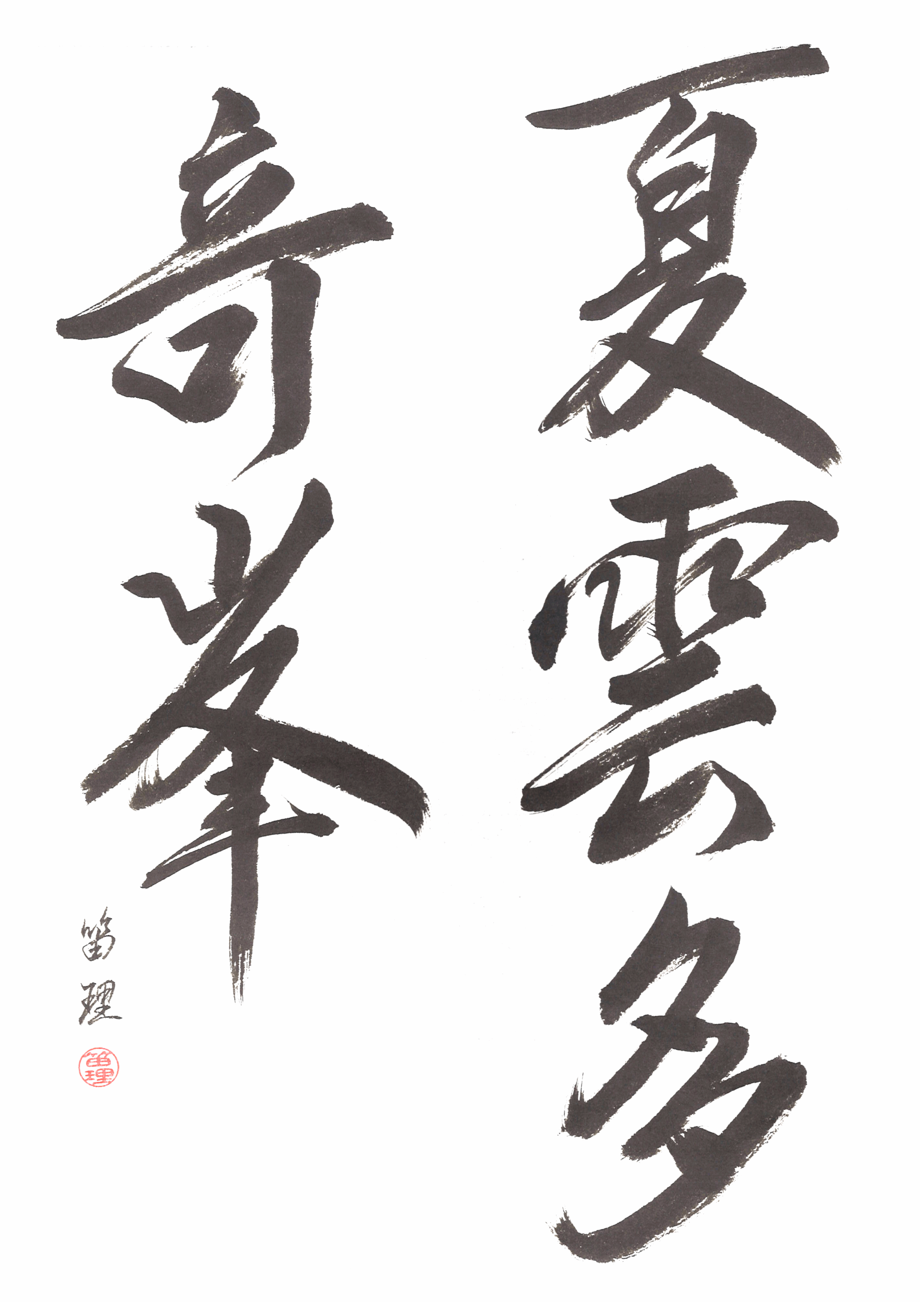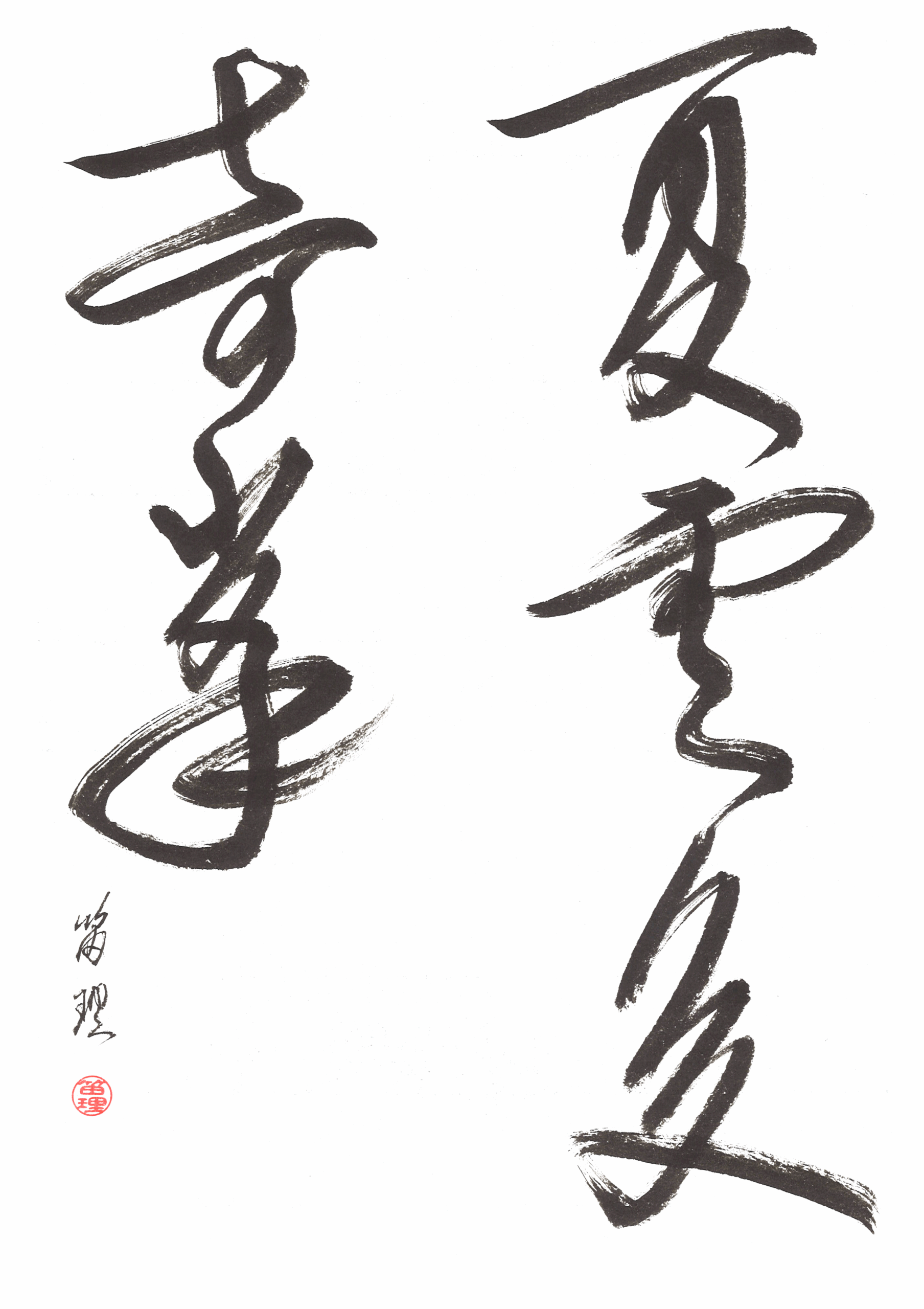 Az olvashatóság itt háttérbe szorul, és a hangsúly a ritmuson, az energián és az érzelmi kifejezésen van. A sōsho nem javítható: minden vonás egyetlen pillanat lenyomata. Ez a stílus különösen érzékeny az író állapotára – a figyelem, a nyugalom vagy éppen a feszültség azonnal megjelenik benne. A gyakorlása ezért nemcsak technikai kihívás, hanem belső munka is. A sōsho-ban az írás már nem pusztán közlés, hanem közvetlen önkifejezés.