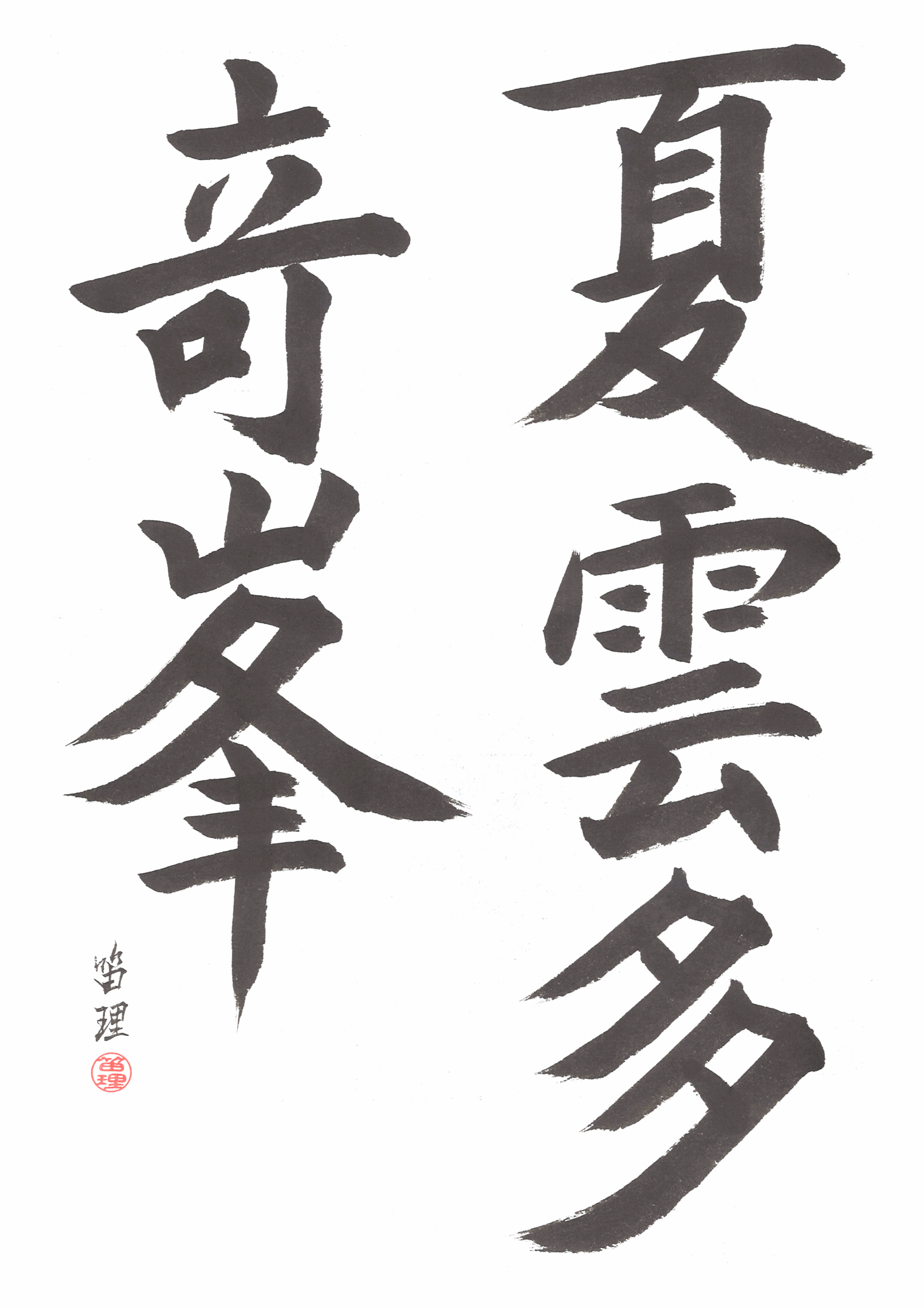 A kaisho a kalligráfia alapja, a legtisztább és legstrukturáltabb írásforma, amely a mai nyomtatott karakterek kiindulópontja is. Minden vonás különálló, tudatosan felépített, és pontos sorrendben kerül a papírra. Az arányok kiegyensúlyozottak, a karakterek szerkezete világos, ezért ez az a stílus, amellyel a tanulás általában kezdődik. A kaisho nem enged sok hibát: minden mozdulatnak súlya van, minden vonásnak helye. Ugyanakkor éppen ez a fegyelem adja meg azt a biztonságot, amelyre később a szabadabb stílusok épülnek.